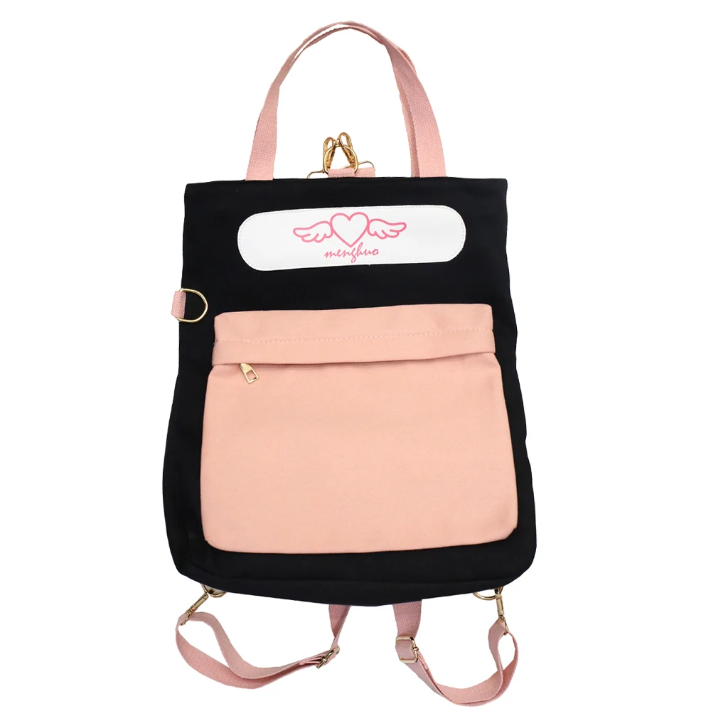 2019New Leisure Canvas Backpack Women School Bookbag Female Large Space Casual Panelled Travel Bag